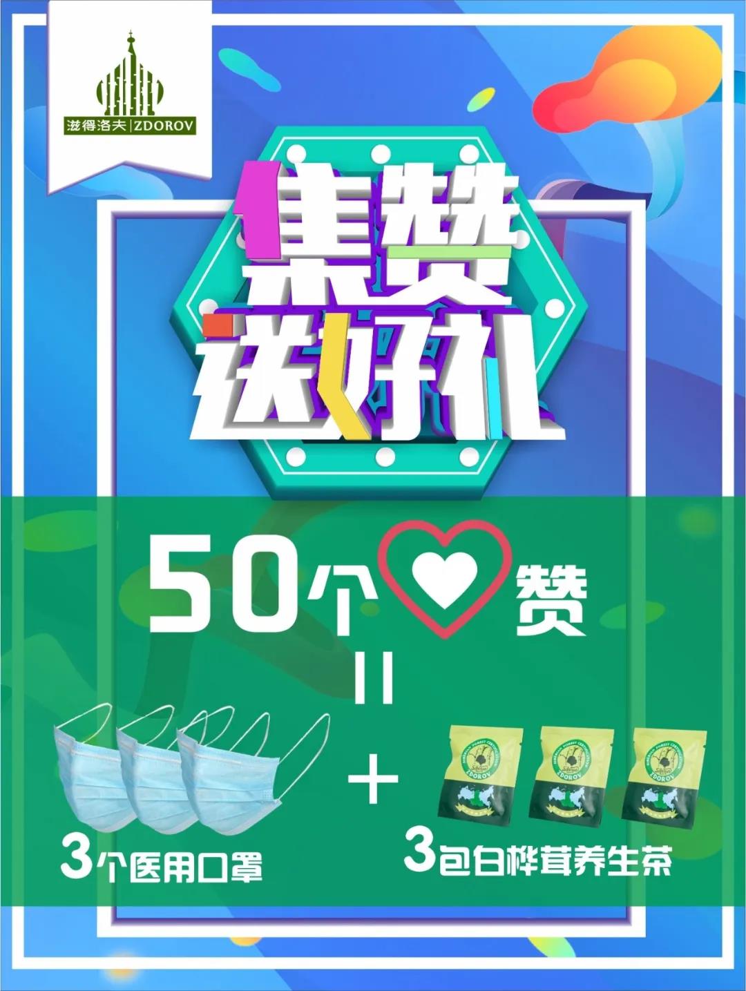 关注滋得洛夫企业微信公众号,在微信朋友圈分享此文章并集赞满50个以上的前100名,可获赠医用外科口罩3个+滋得洛夫白桦茸养生茶3包。分享集赞完成后可添加客服微信领取,或联系滋得洛夫京东旗舰店/滋得洛夫天猫商城店客服领取。数量有限!先到先得!