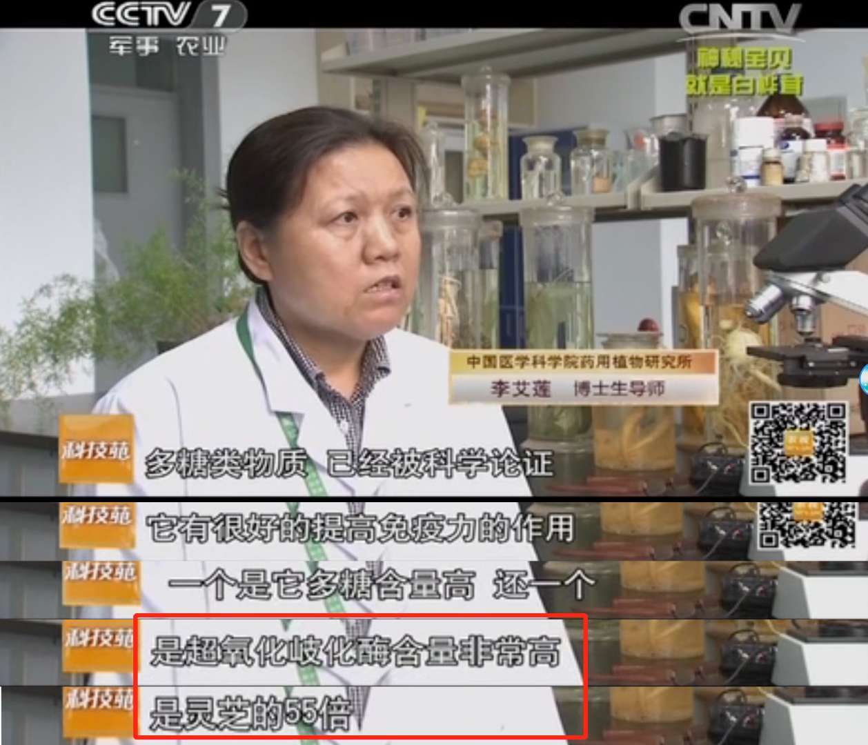 白桦茸检验結果发觉其所含的SOD是野生灵芝的55倍,巴西蘑菇的23倍,猴头菇的25倍。