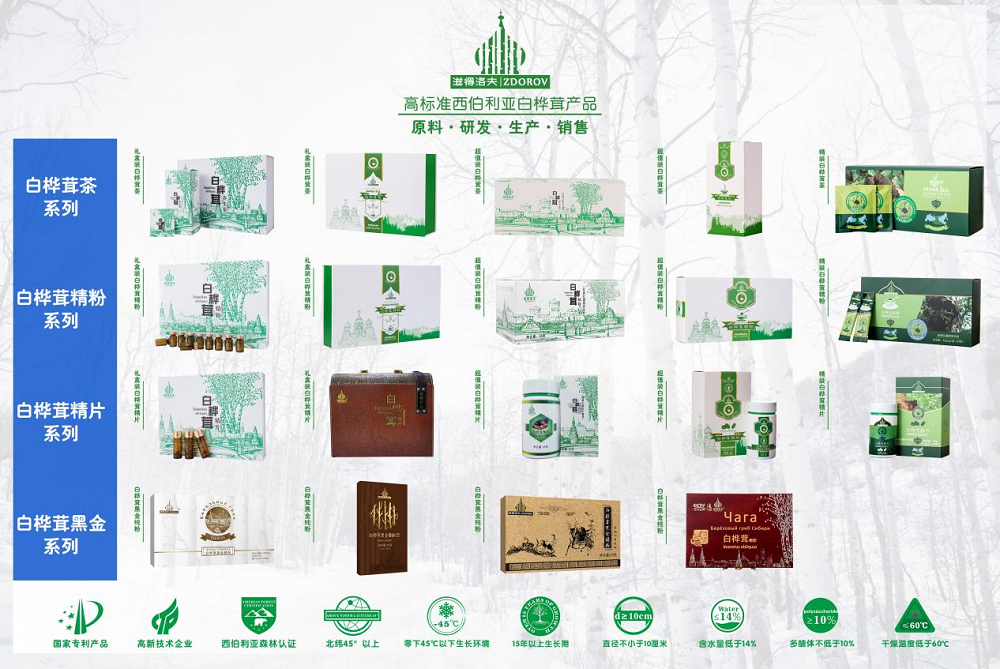 滋得洛夫根据白桦茸的主要功效以及适用人群制定了全面的产品线方案,为健康体质,亚健康及三高,糖尿病人群等三大类人群构建一个绿色,全面,高效的保健养生解决方案。所以,目前滋得洛夫推出了西伯利亚白桦茸养茶为健康人群建立起坚固的防线,推出西伯利亚白桦茸精粉为亚健康人群全面调理增强机体免疫力,为三高人群及初期糖尿病患者实现简单便捷的疗理方案,推出西伯利亚白桦茸精片为糖尿病人群提供一个速效的康复方案。在产品体系中建立起一个融合养生,预防,治疗于一体的绿色健康全方位护航机制。
