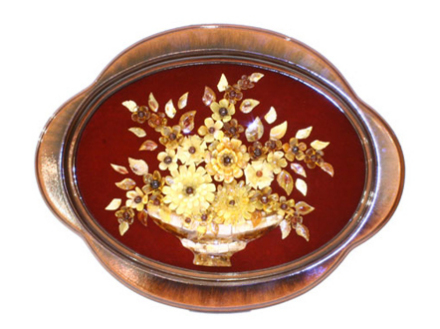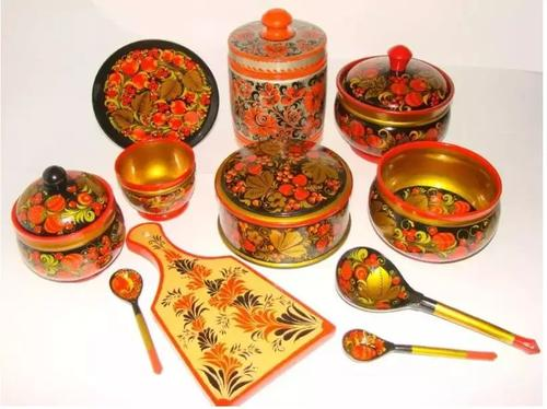 霍赫洛姆漆器是一种历史悠久的木制漆器,红色、金色、黑色的花纹,通常手工绘制在厨具上,比如最常见的木勺子,木碗。