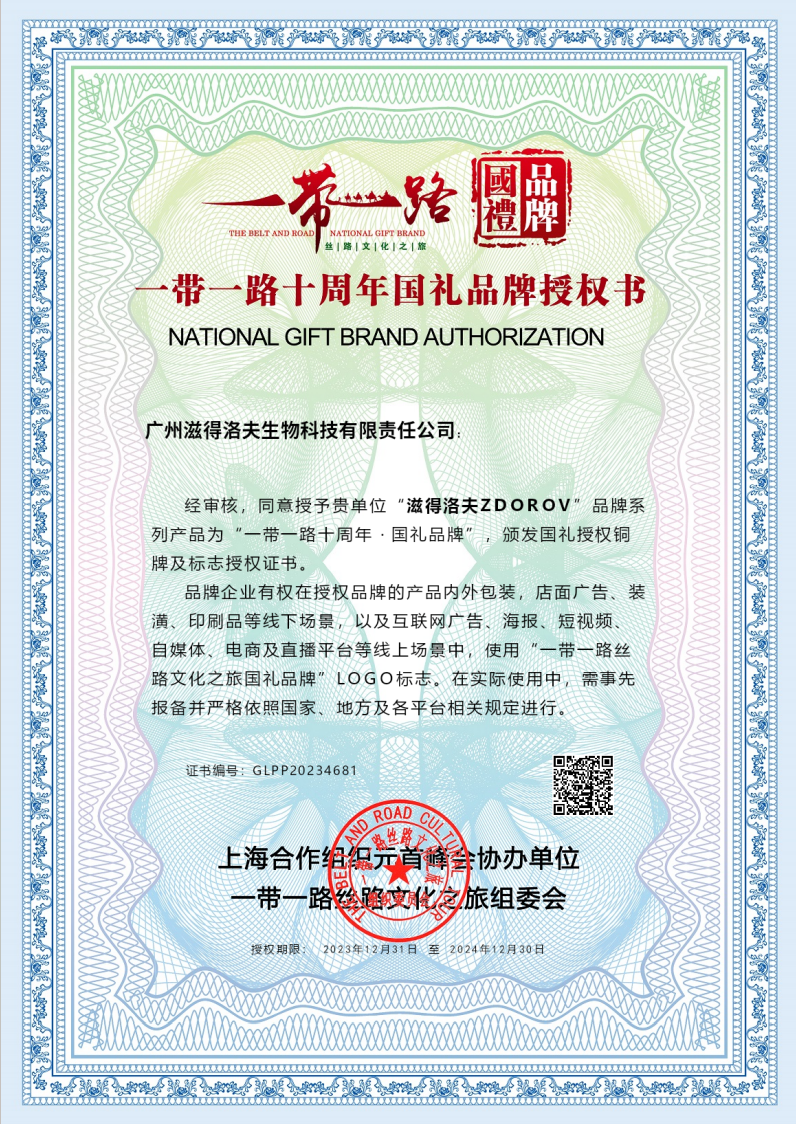 近日,由上海合作组织元首峰会协办单位——一带一路丝路文化之旅组委会等机构共同发起的“一带一路十周年·国礼品牌”活动中,“滋得洛夫”成功入选。脚踏实地,仰望星空,未来,滋得洛夫将以民族品牌身份,持续钻研,保持进步,将国礼品质送至全世界。