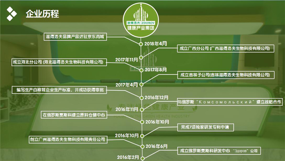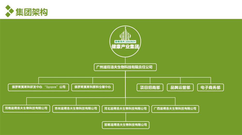 滋得洛夫遵从“品质源于天然,科技引领健康”的发展路线,秉承“上医治未病”的高效防治养生理念。专注绿色健康,创造更简单,更有效,更全面,更高效的人体健康保障。创造健康源动力,提升人体健康等级,致力成为你一生的健康伴侣!